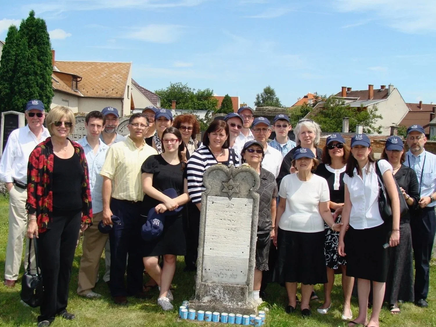 Our Koppel Family Heritage Tour in Sopron, Hungary in 2009 with our recently departed Aunt Vera in sun glasses behind the Koppel monument…standing next to our other Aunt Vera in hat and white t-shirt.